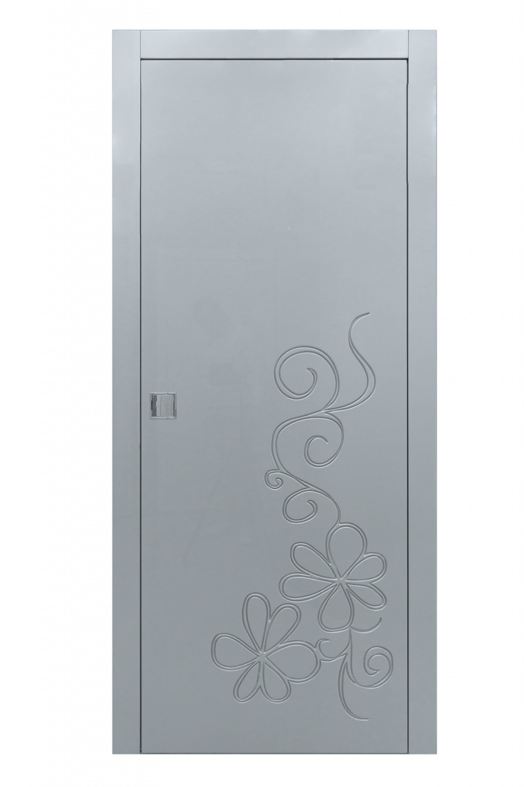 Porta in stile moderno con laccatura grigio metallizzato lucido specchio e incisioni floreali realizzate mediante controllo numerico ( è possibile personalizzare il disegno da realizzare sulla porta)
