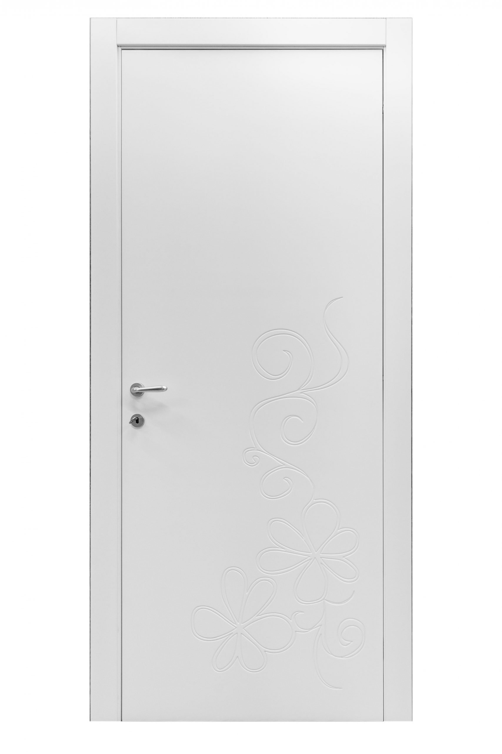 Porta in stile moderno con laccatura bianca opaco e incisioni floreali realizzate mediante controllo numerico ( è possibile personalizzare il disegno da realizzare sulla porta)