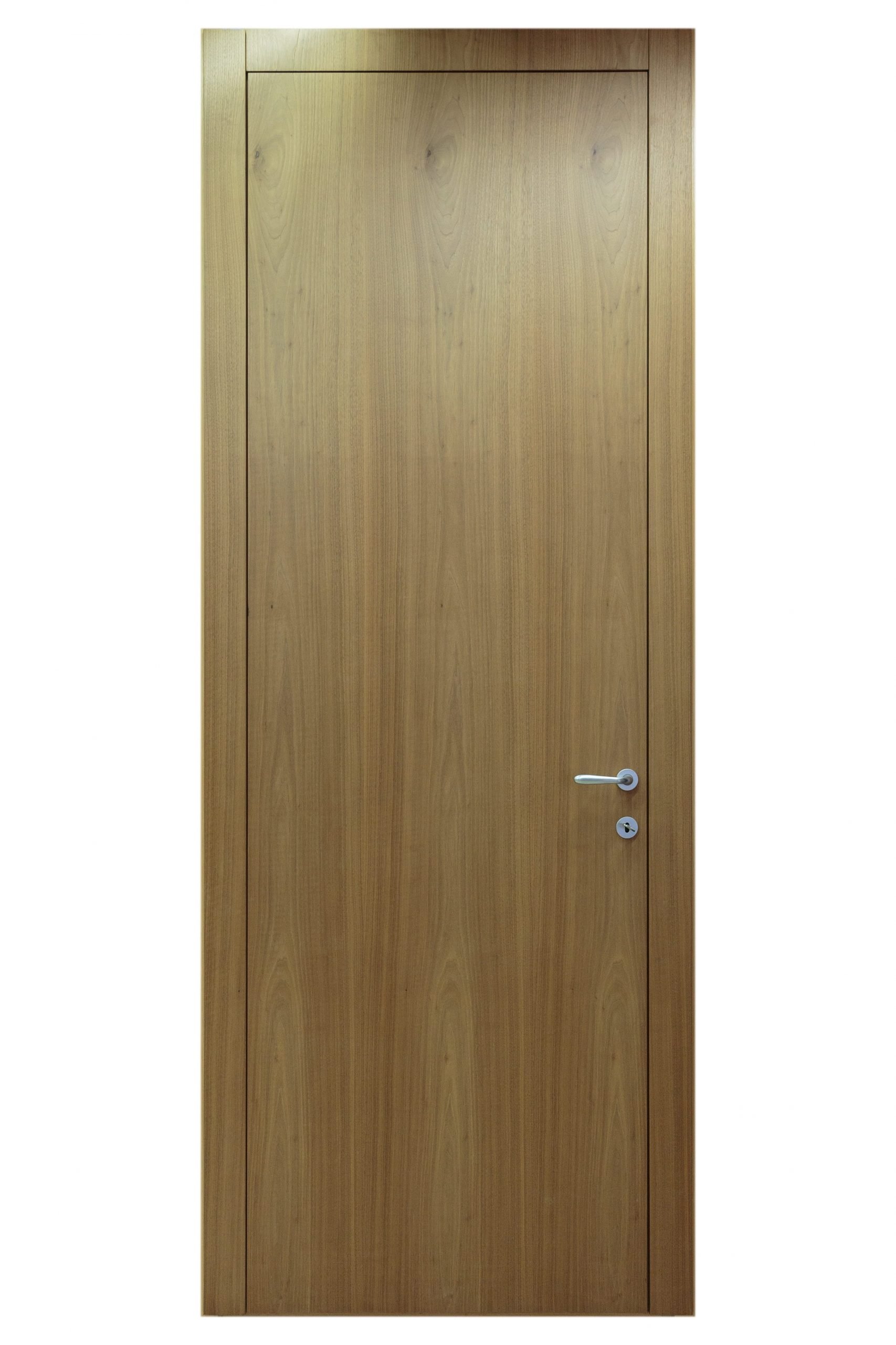 Porta a tutta altezza trancia in noce canaletto con verniciature speciali effetto legno naturali. Ferramenti innovativi con sistema calamita, cerniere a scomparsa, coprifilo piatto. È possibile personalizzare il seguente modello in diversi aspetti.