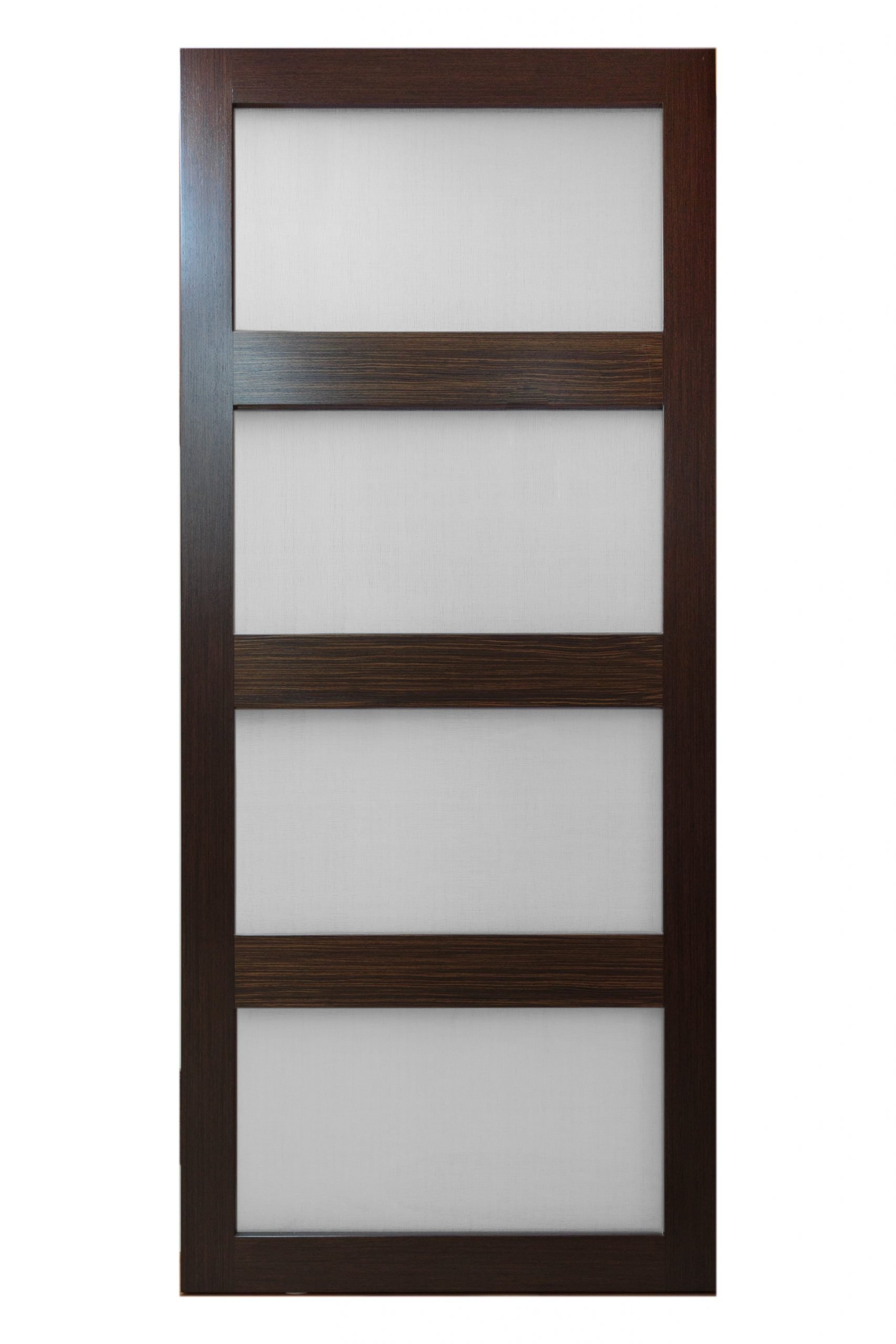 Porta scorrevole a tutta altezza in stile moderno con sistema scorrevole magico( la porta scorre su un binario invisibile). Realizzato con legno wengè. Applicazione di lastre in vetro incassate sulla porta stessa.È possibile personalizzare il seguente modello in diversi aspetti.