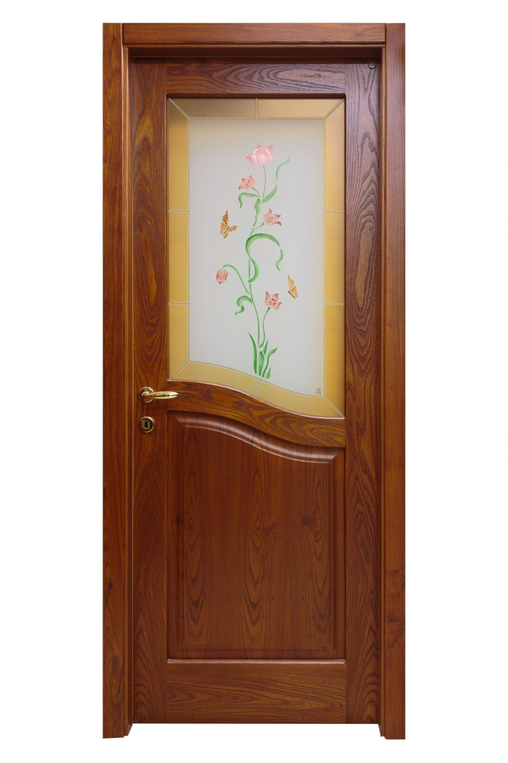 Porta in stile classico realizzata in vero legno massello. Trancia in ciliegio con finiture effetto poro aperto.